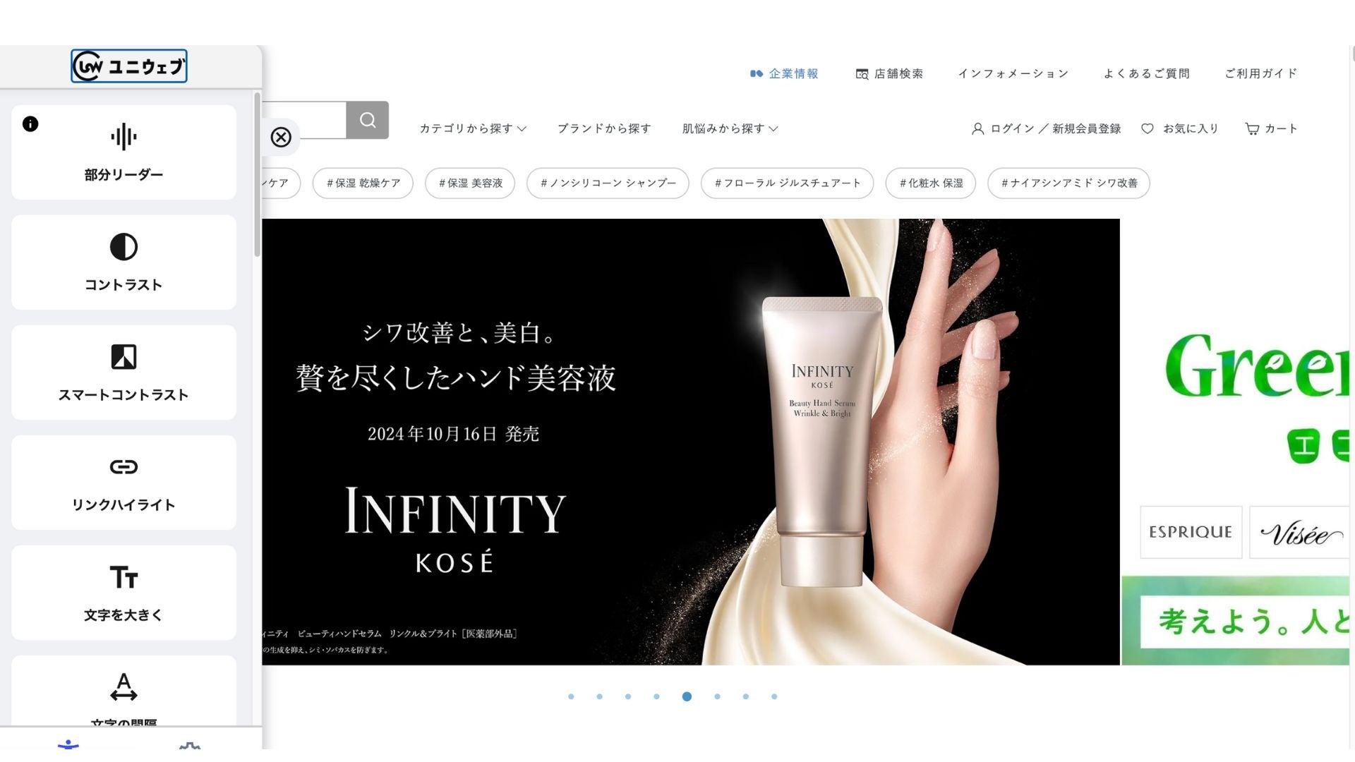 株式会社Kiva(本社:東京都中央区、代表取締役社長:野尻 航太、以下 Kiva)は、株式会社コーセー(本社:東京都中央区、代表取締役社長:小林 一俊、以下 コーセー)およびグループ会社が運営する各種ウェブサイトに、ウェブアクセシビリティツール「ユニウェブ」の提供を開始したことをお知らせします。