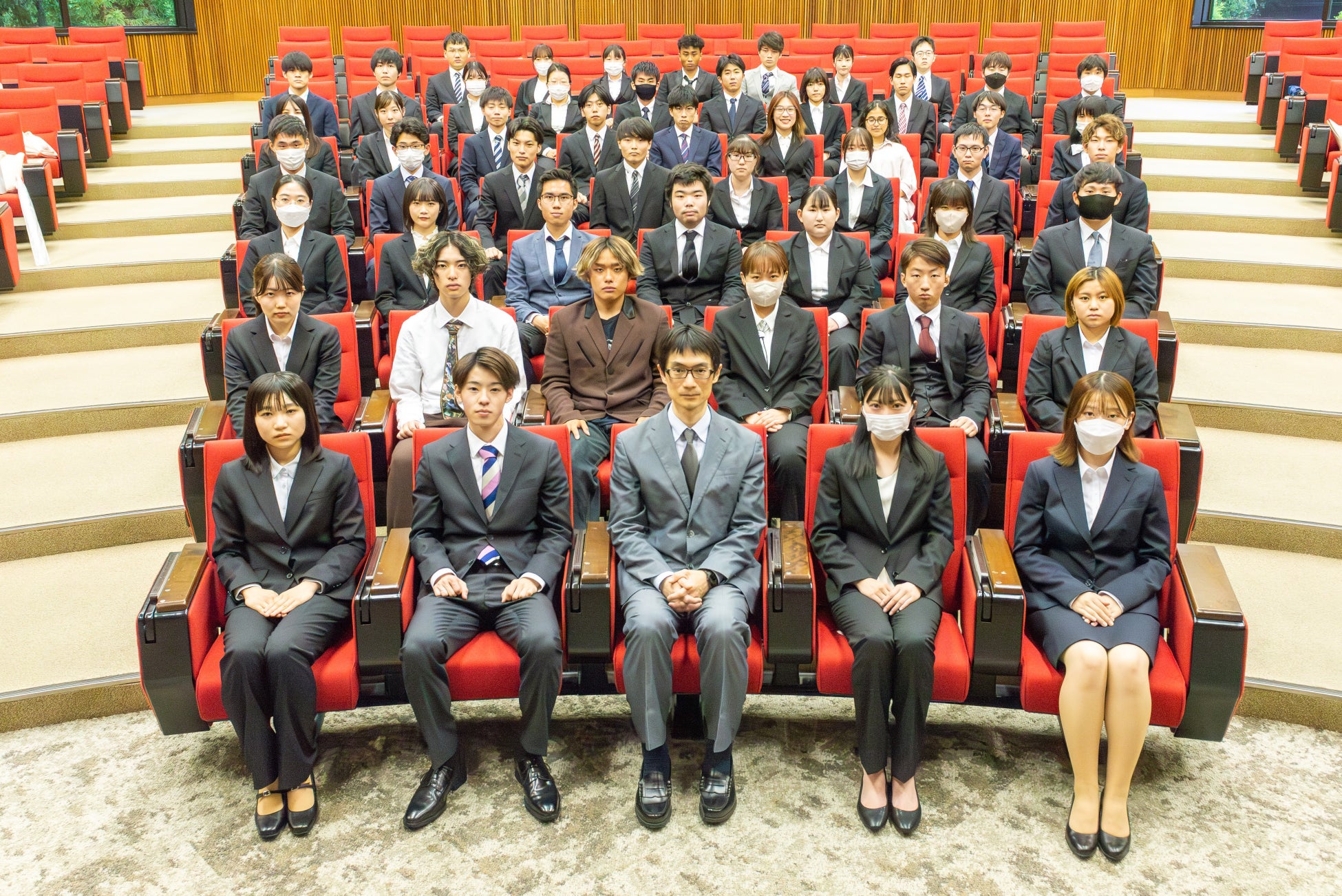 創立者奨学金ならびに学長奨学金は、前学期(2022年度後期)の成績優秀者に対して奨学金を支給する制度です。この度は創立者奨学生20名、学長奨学生後期36名、計56名の学生へ認定書を授与しました。その中には、Global BBA学生6名が採用されています。