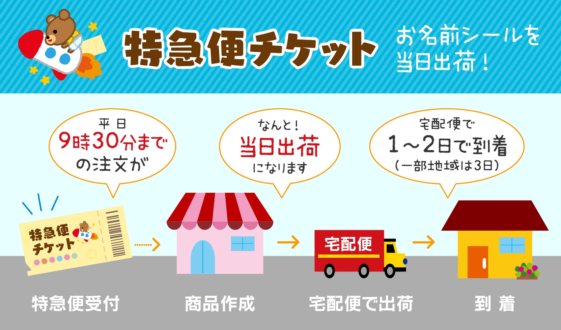さらにお急ぎの方は、ご注文〜商品出荷までを早くする「特急便チケット」も取り扱っております。