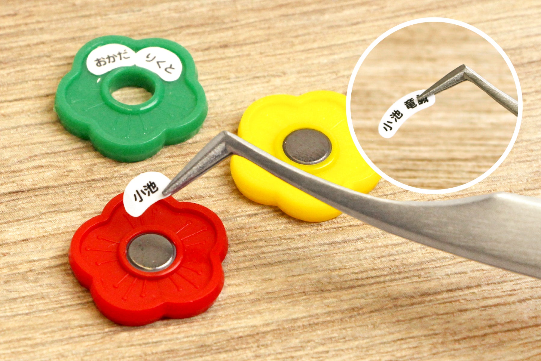 プラス150円で、おはじきや計算棒などの細かいシールの貼り付けを手助けする「ピンセット」をおつけすることができます。入学準備2点セットは、ピンセットつきで販売しています。