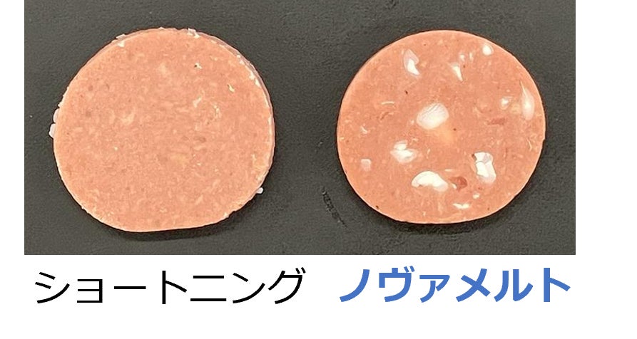 「ノヴァメルト」は、加熱時の油脂の融(と)け出しを制御する独自開発技術(Melting Control技術)により、食品中に油脂の一部を留めさせることで、食品に多汁感や瑞々しさを付与できる食用加工油脂です。