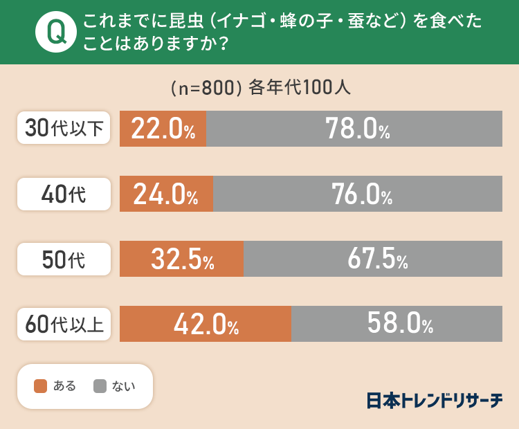 今回は、全国の男女計800名を対象に「昆虫食に関するアンケート」を実施しました。