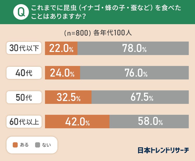 ■60代以上の42.0%が、これまでに昆虫を食べたことが「ある」