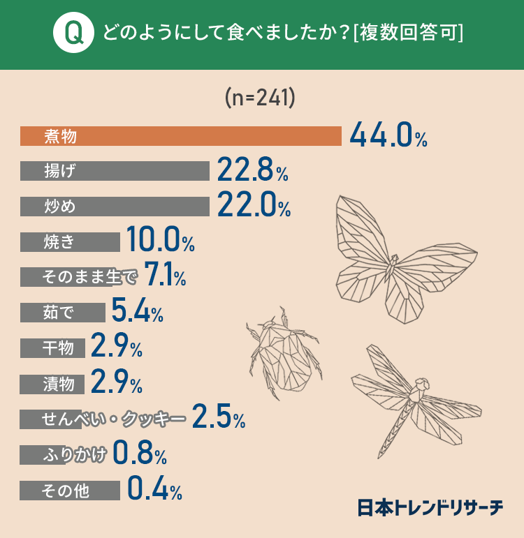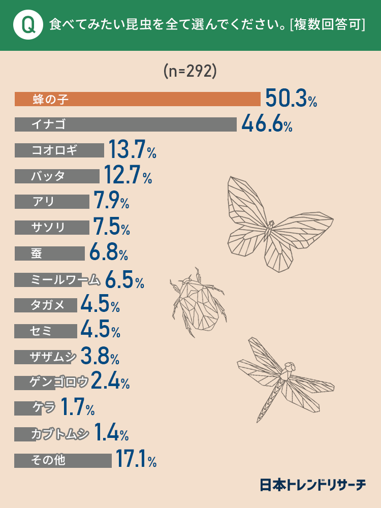 日本トレンドリサーチ(運営会社:株式会社NEXER)は、「昆虫食に関するアンケート」を実施し、結果をサイト内にて公開したので紹介します。