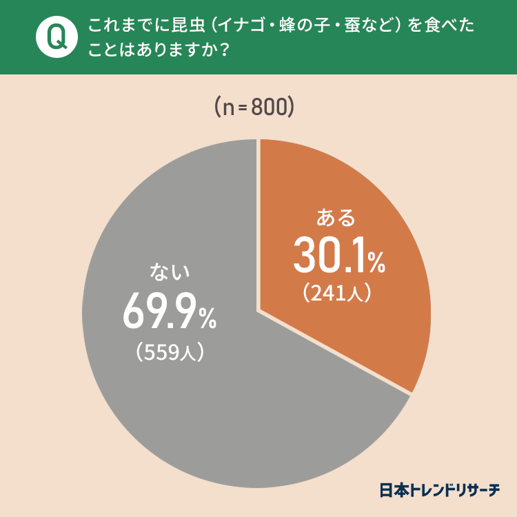 30.1%の方が、これまでに昆虫を食べたことが「ある」ようです。