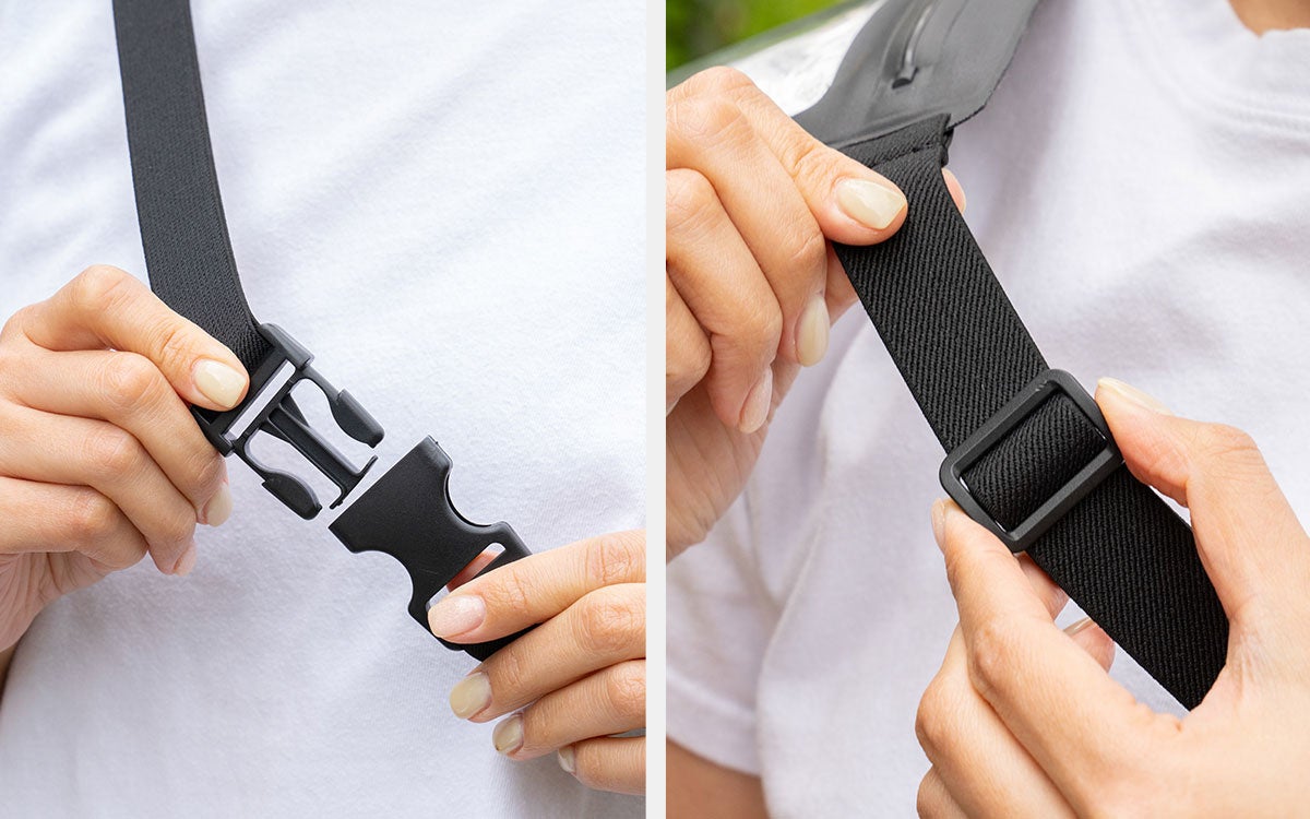 ストラップは長さを調節可能。クロスボディバッグとしてだけでなく、ショルダーバッグとしても使用できます。