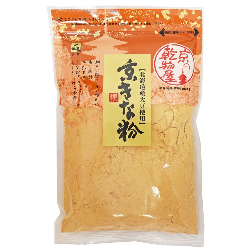 京きな粉とはきめが細かく深く焙煎したきな粉。深煎りきな粉に合う北海道産大豆を焙煎職人が一粒一粒吟味し丁寧に焙煎しています。香りと味が濃いのが特長で昔から上品な甘さの京菓子に使われていることでお馴染みです。