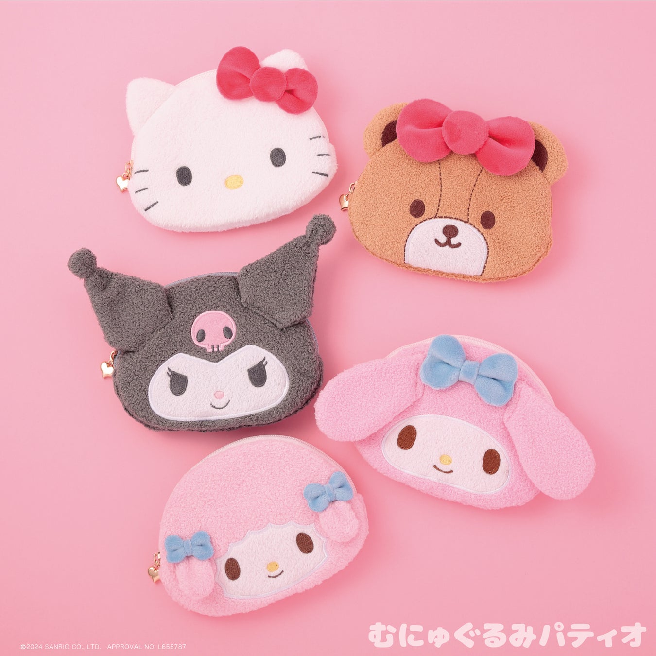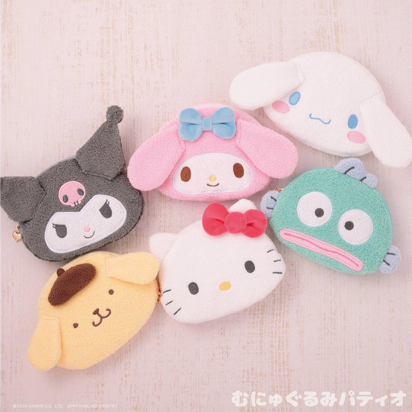小物収納にぴったり♪サンリオキャラクターズより「フラットフェイスポーチ」が12月28日(土)~むにゅぐるみパティオ対象店舗で発売開始!
