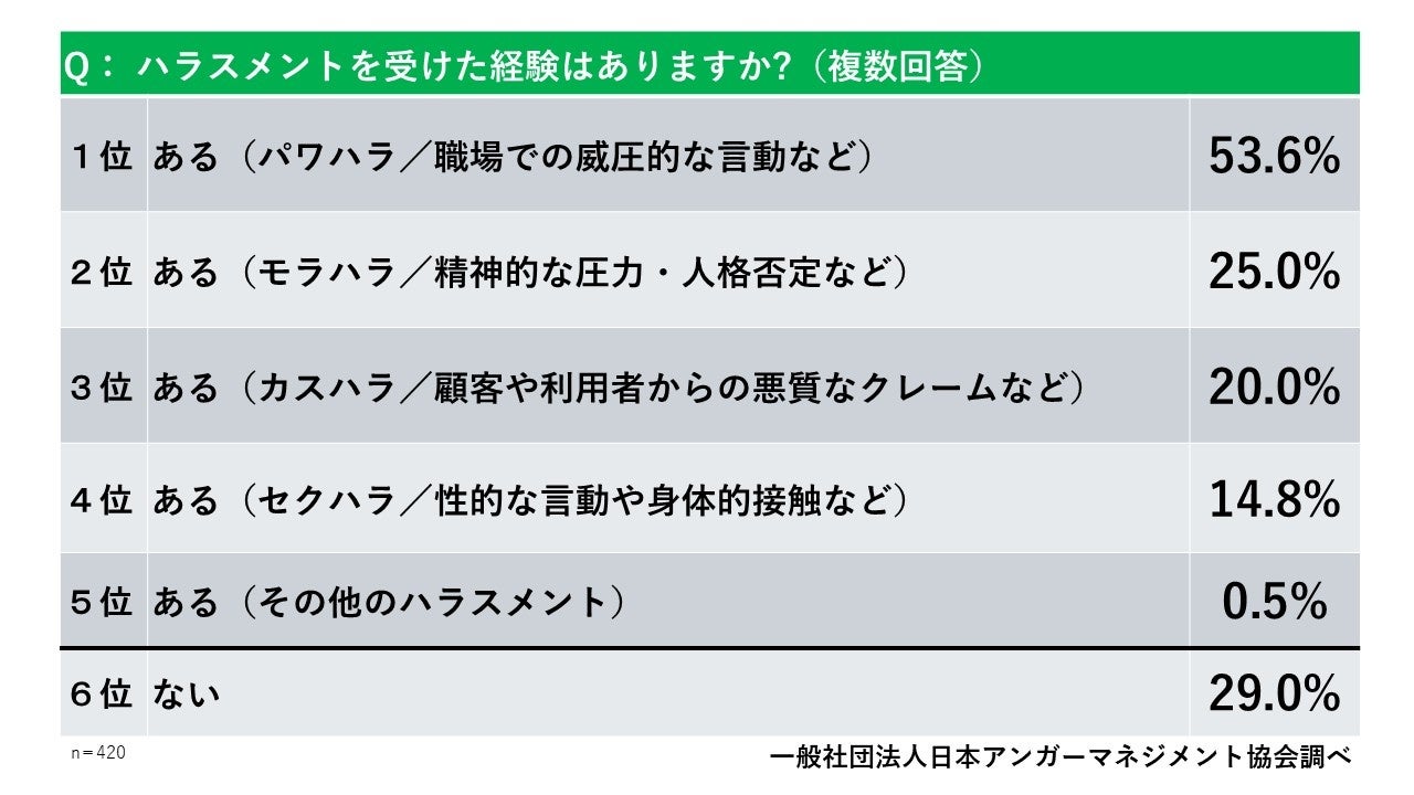 7割(71.0%):何らかのハラスメント被害を経験 → 怒りや攻撃性が社会全体に広がる構造的課題