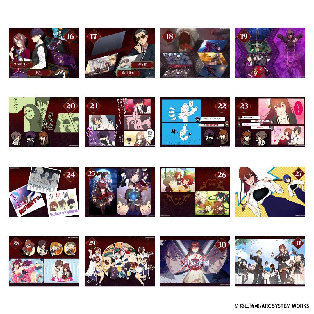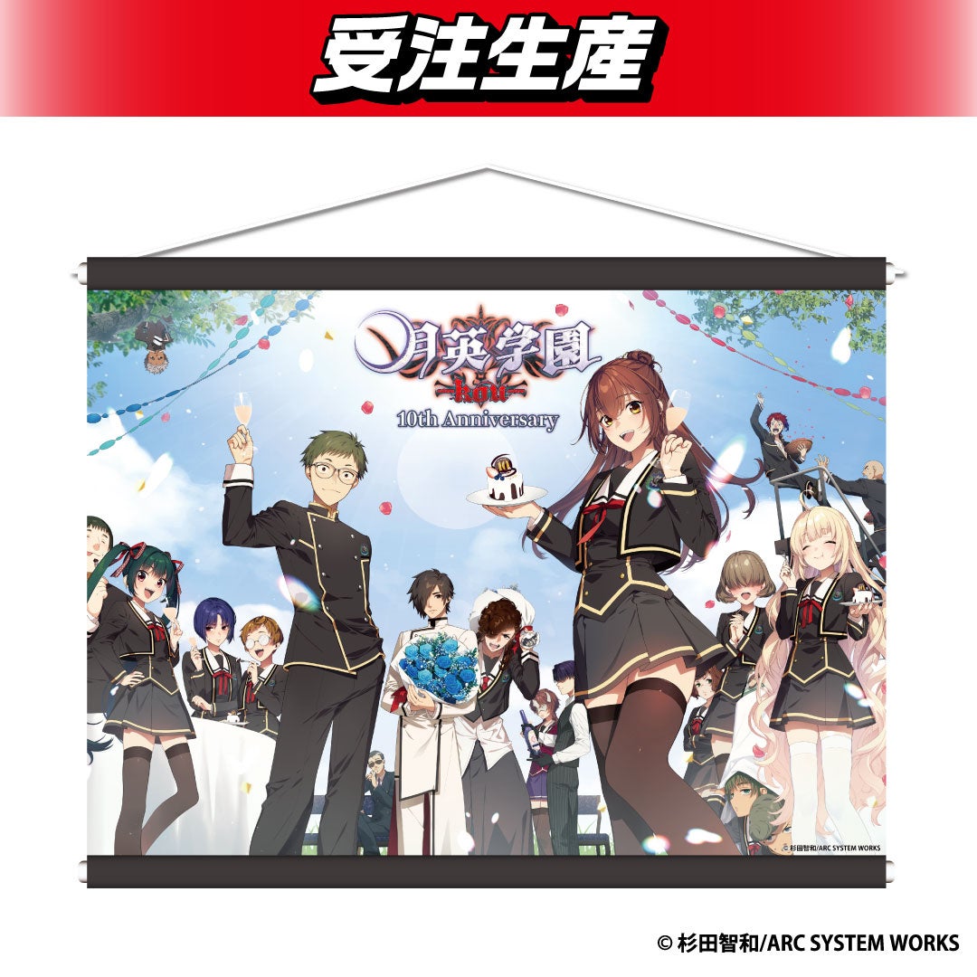 「月英学園 -kou-」にてイラストを担当している、すめらぎ琥珀先生描き下ろしの10周年記念イラストを使用したB2タペストリーや万年日めくりカレンダーなど、ここでしか手に入らない限定グッズとなっております。