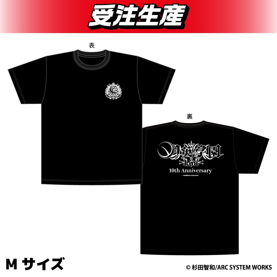 背面に大きく10周年記念ロゴ、正面胸元に月英学園校章がワンポイントで入ったデザイン