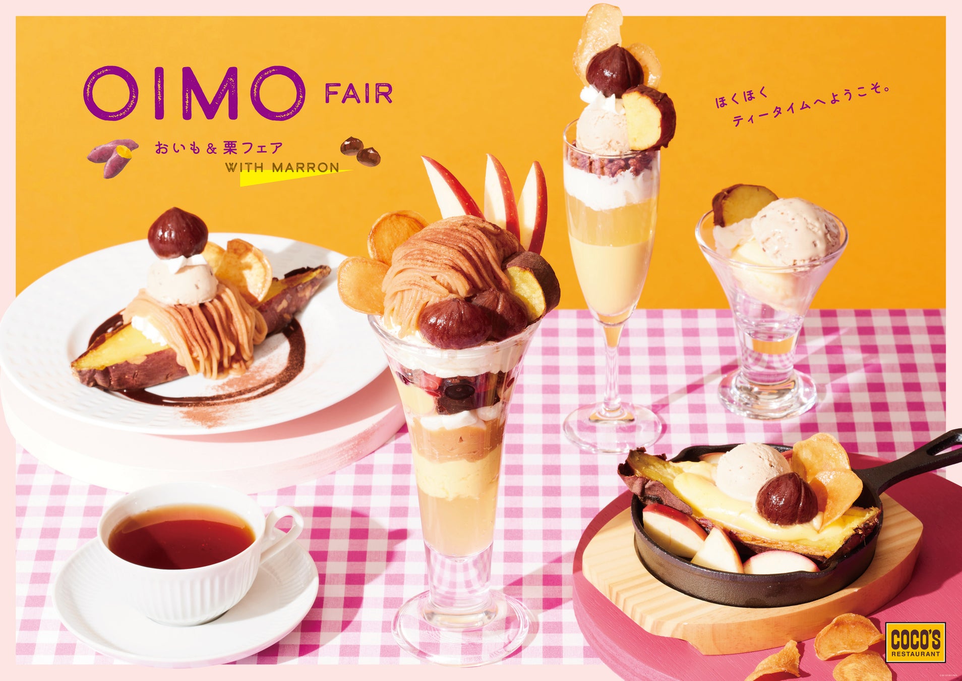 ぜひお近くのココスで、おいもと栗を心ゆくまで味わえる「おいも&栗フェア」をご堪能ください。