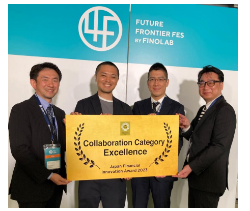 このたび受賞したJFIAとは、株式会社FINOLABが事務局となり、2022年中にプレスリリースされた金融関連のイノベーション案件を抽出し、その中から一般社団法人金融革新同友会FINOVATORSが金融イノベーションの取り組みを表彰する制度で、今年が4回目です。スタートアップ、金融機関、コラボレーションの3カテゴリから成り立ち、4社の共同プロジェクトは、「JFIA 2023 コラボレーション部門優秀賞」を受賞しました。3月10日(金)に開催された表彰式には4社共同で出席し、受賞の喜びを分かち合いました。