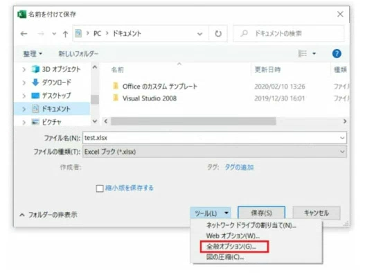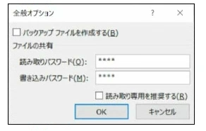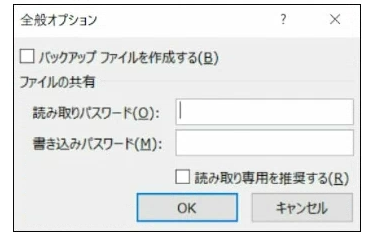 Excelファイルでは、ファイルを開くために必要な「読み取りパスワード」と、編集に必要な「書き込みパスワード」を設定できます。