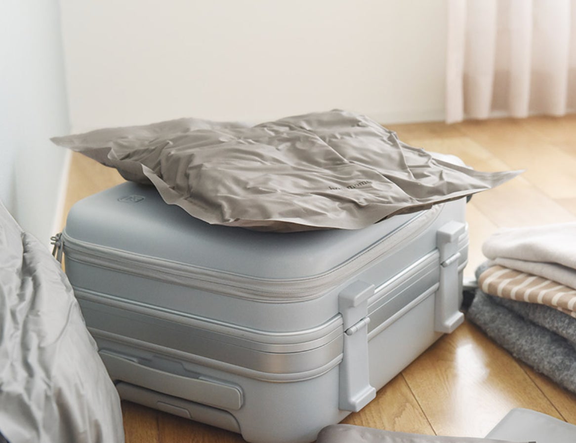 旅先のホテルでチェックアウトの朝、急いで荷造りをする際も、「時短」を叶える圧縮袋があれば安心です。