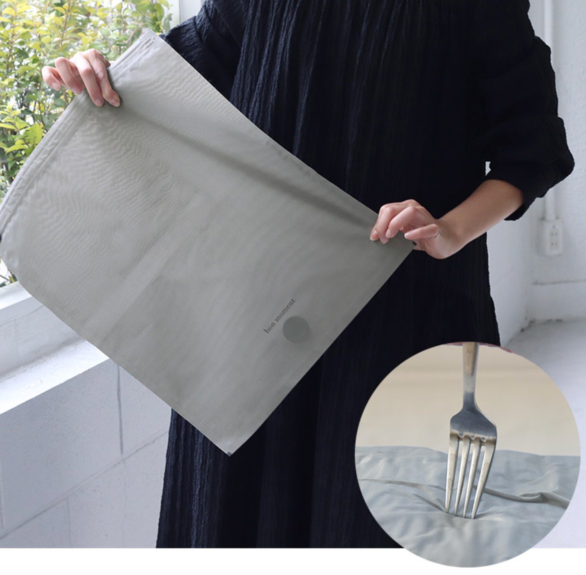見た目はまるで布地のようで、ビニール袋に比べてきちんと感のある表情。