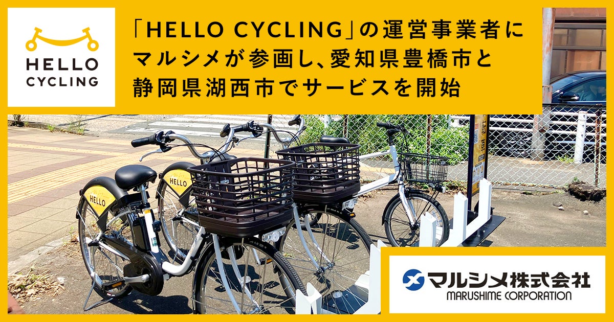 マルシメ株式会社(所在地:愛知県豊橋市、代表取締役社長:大熊 康丈、以下「マルシメ」)とOpenStreet株式会社(本社:東京都港区、代表取締役社長CEO:工藤 智彰、以下「OpenStreet」)は、国内最大級のシェアサイクルプラットフォーム「HELLO CYCLING」の運営事業者にマルシメが参画し、愛知県豊橋市と静岡県湖西市で2024年7月23日にサービスを開始したことをお知らせします。なお、愛知県豊橋市と静岡県湖西市での「HELLO CYCLING」展開は今回が初めてとなります。