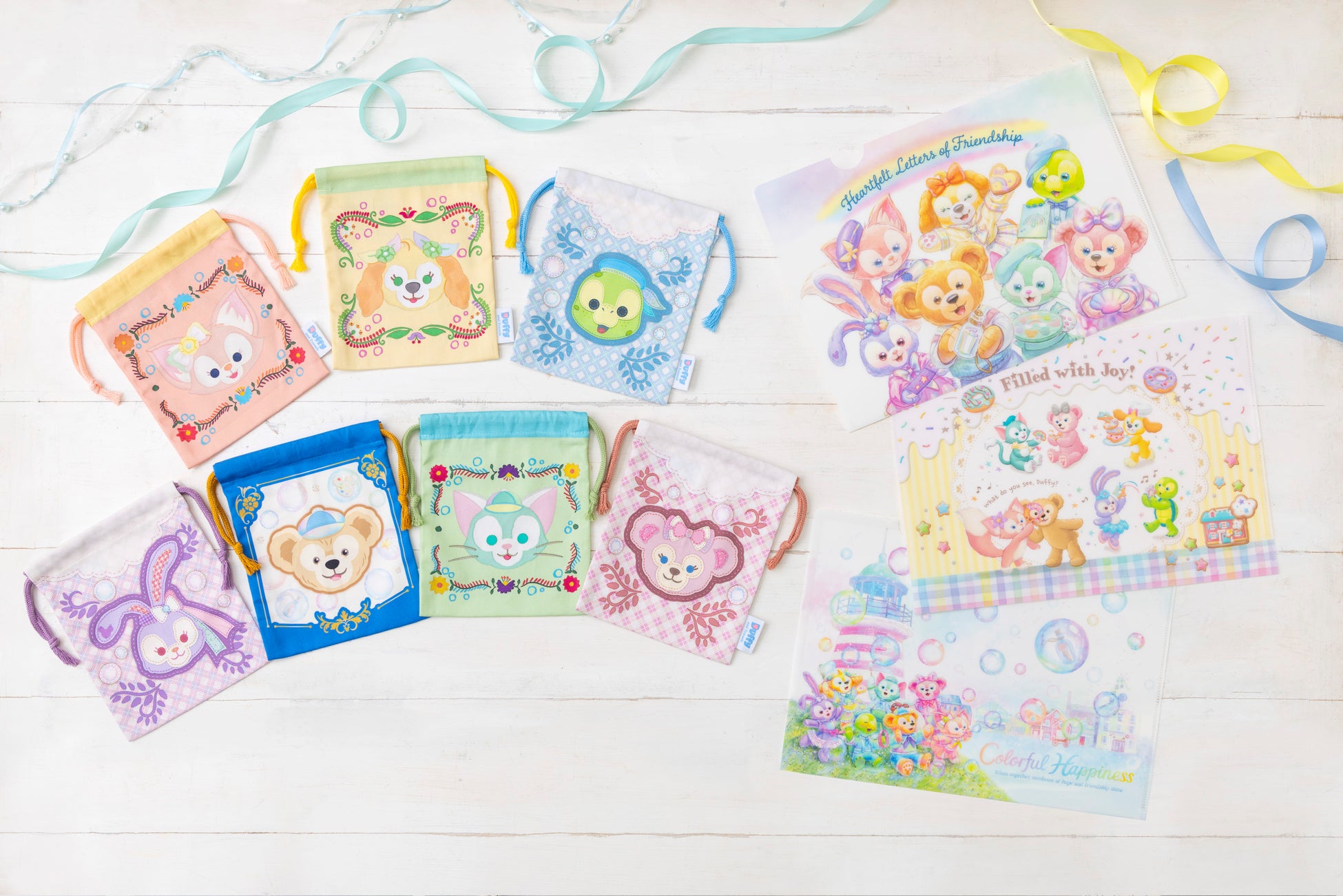 そのほか、東京ディズニーシーに飾られている「ダッフィー&フレンズ20周年:カラフルハピネス」のデコレーションをイメージしたデザインのきんちゃくやクリアホルダーセットが登場します。きんちゃくは全部で7種類あり、どのデザインが出るかは袋を開けてからのお楽しみです。20周年の1年間の思い出をお友だちやご家族と振り返ってみてはいかがでしょうか。