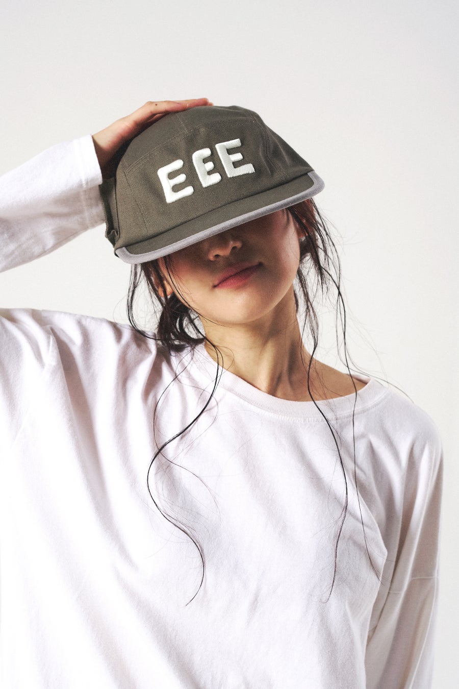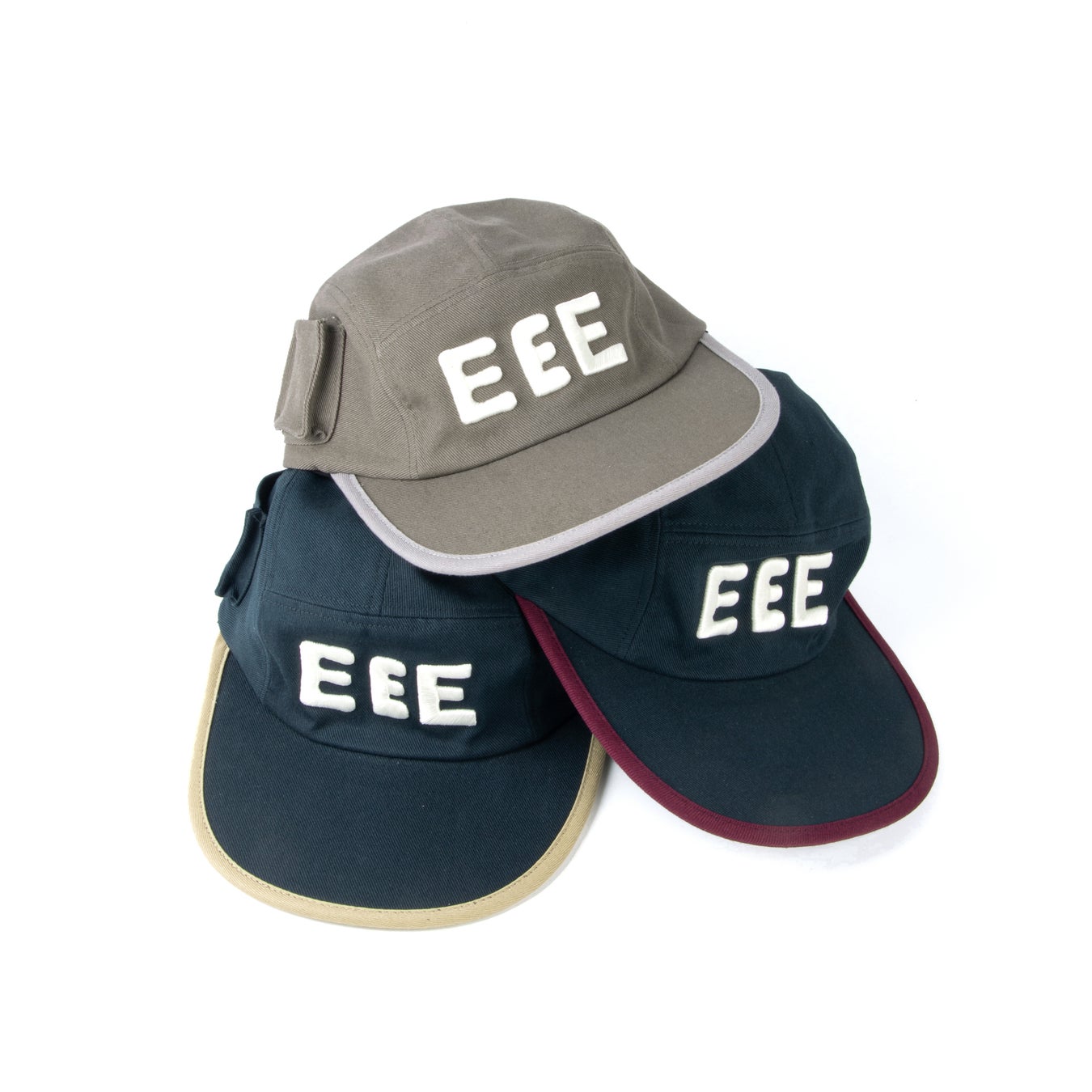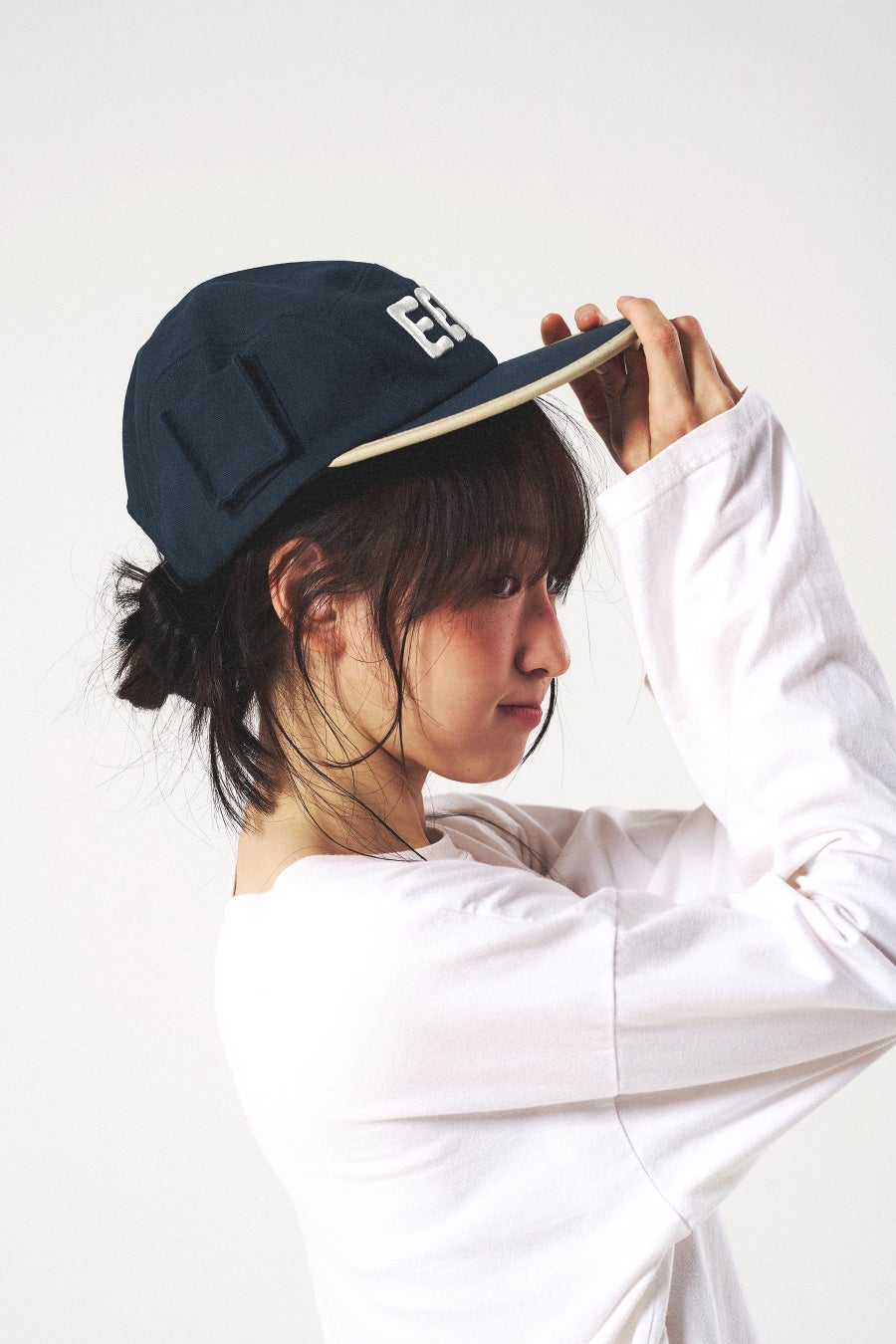 人気モデル「ポケットキャンプキャップ」からも新色が登場。バーガンディー/ネイビー、ベージュ/ネイビー、グレーの3カラーは、SNSでも目に留まるキャッチーなデザインで、一度見たら忘れられない存在感を放ちます。右サイドに配されたポケットは小物の収納に便利で、フロントには大胆な「EEE」レタリングを配置。100%コットンの5パネルデザインは、アウトドア感を漂わせつつ、快適さと耐久性を兼ね備えています。フリーサイズ(54~60cm)でユニセックスに楽しめ、韓国製の高いクオリティが際立つ一品です。販売価格は¥8,800(税込)です。