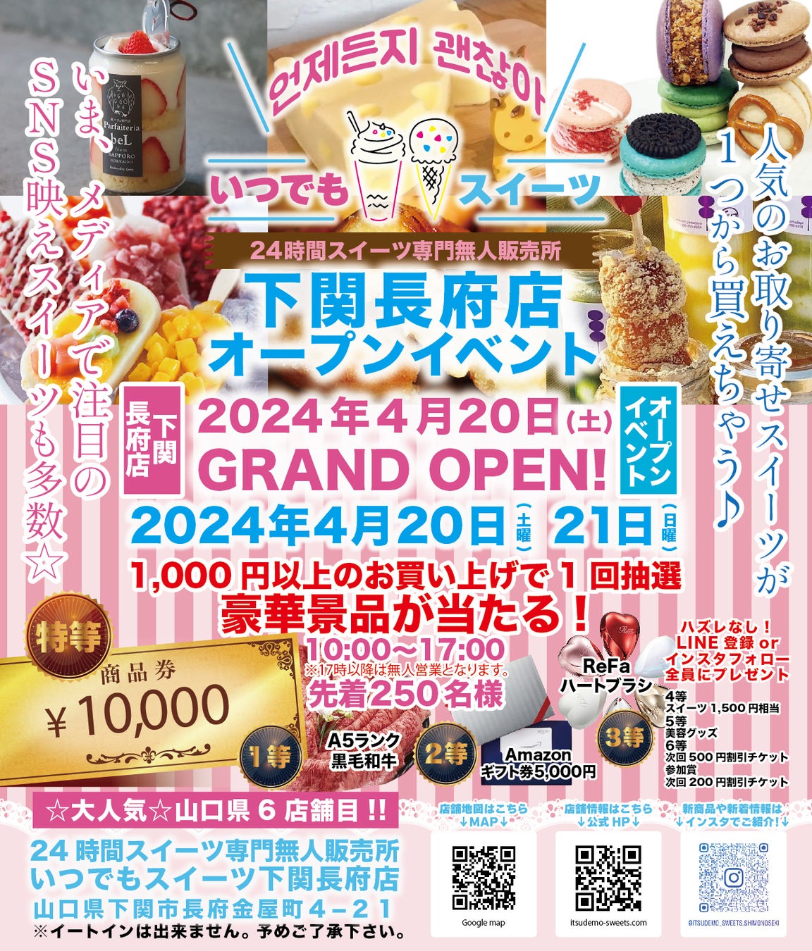 メディアで話題の『いつでもスイーツ下関長府店』が山口県下関市に新店舗出店!