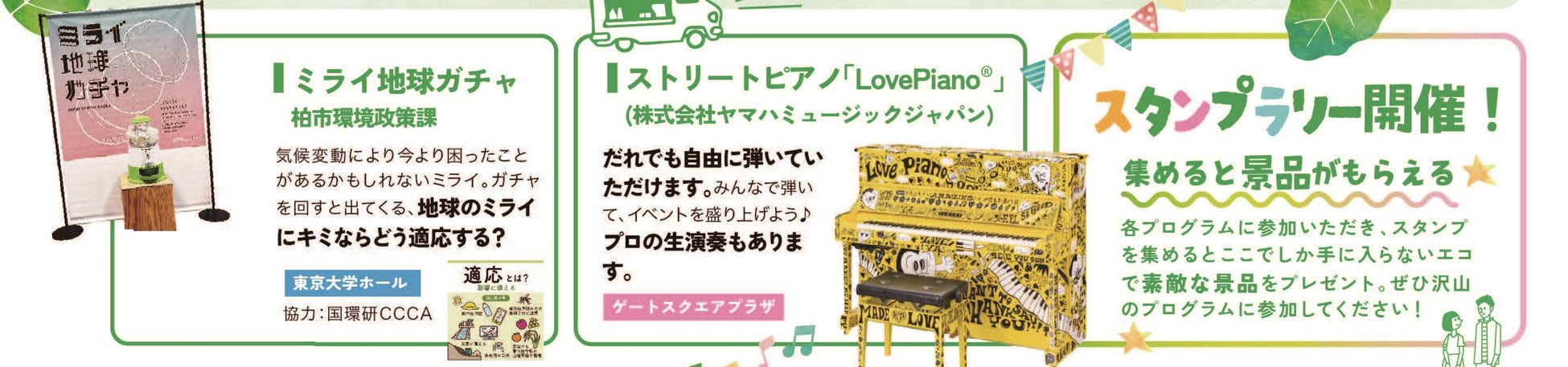 地球の未来について考えるガチャや、各プログラムに参加してスタンプを集めると、素敵な景品がもらえるスタンプラリーなども実施します。
