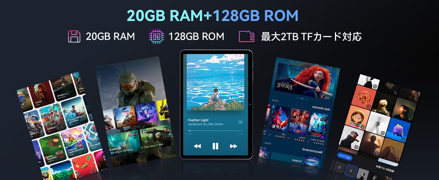 20GB(RAM8GB+拡張12GB)の大容量メモリと128GBストレージを搭載。さらに最大2TBのmicroSDカードにも対応し、容量を気にせず大容量ファイルも安心して保存できます。