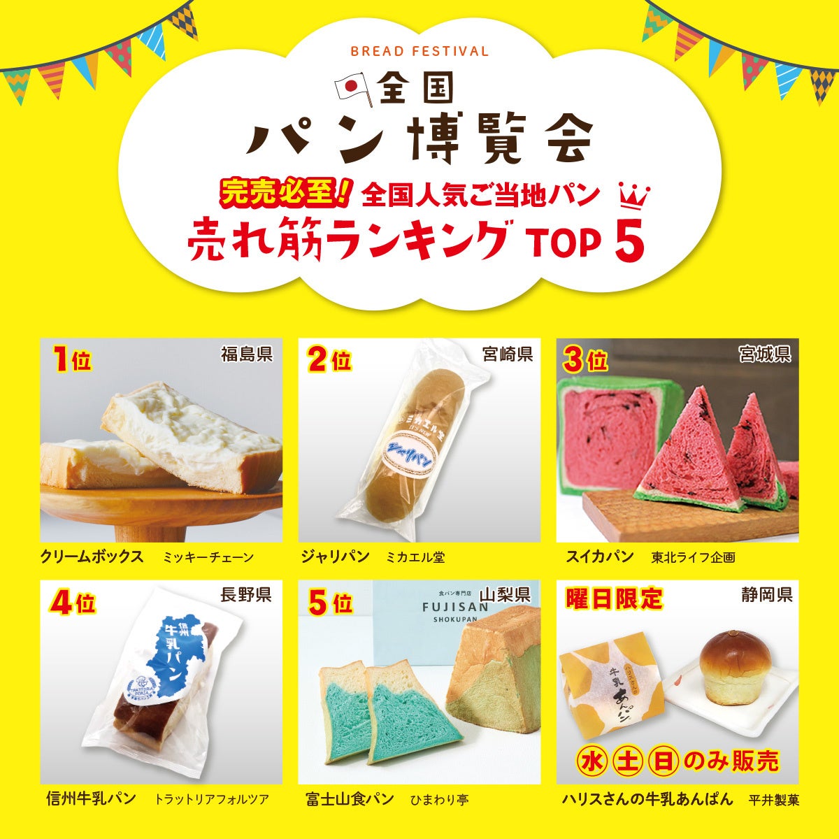 今回は、千葉県に初登場となる話題の「クリームボックス」(福島県)、宮崎県が誇る県外ではまず買えない人気ご当地パン「じゃりぱん」をはじめ、長野県のソウルフード「牛乳パン」(長野県)、完売必至の「富士山食パン」(山梨県)、復刻販売した幻の「ブドーパン」など、各地域で愛されるパンやお取り寄せで人気のパンが登場します。