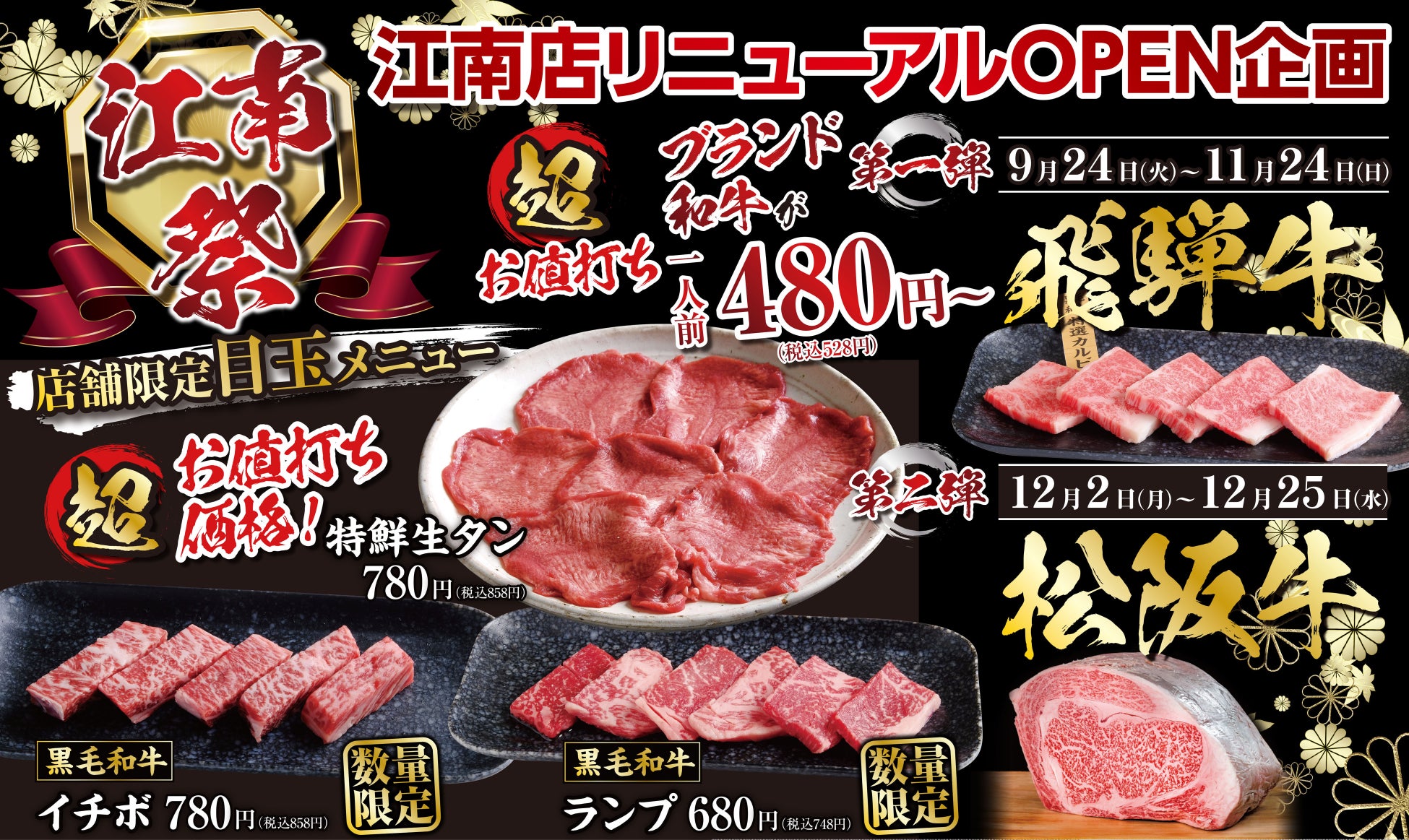 2024年9月24日(火)~あみやき亭江南店がリニューアルオープンするのに伴いリニューアルオープンイベント第1弾【江南祭・飛騨牛フェア】を開催します!!