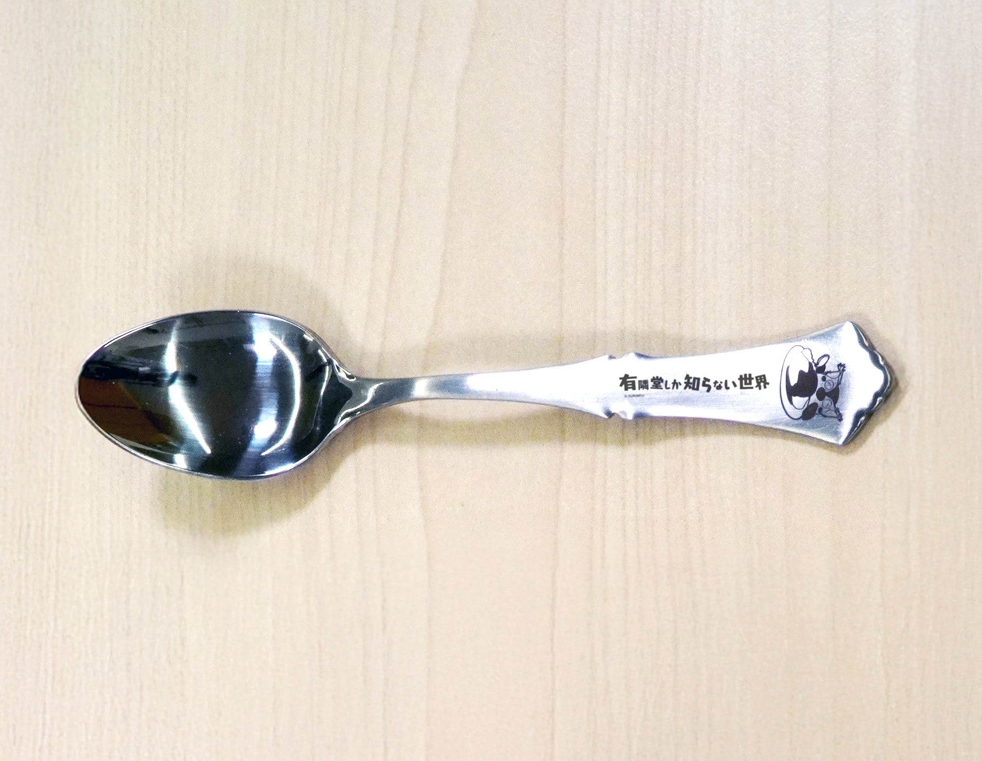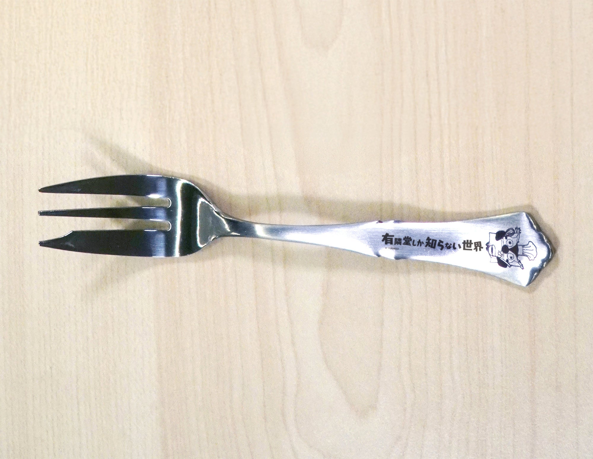 オムライスを食べるブッコローの姿をレーザー刻印したスプーン。ティータイムやデザートに最適なサイズ感です。別売りのフォークとセットで揃えて、ご自宅でも「有隣食堂」気分をお楽しみください。