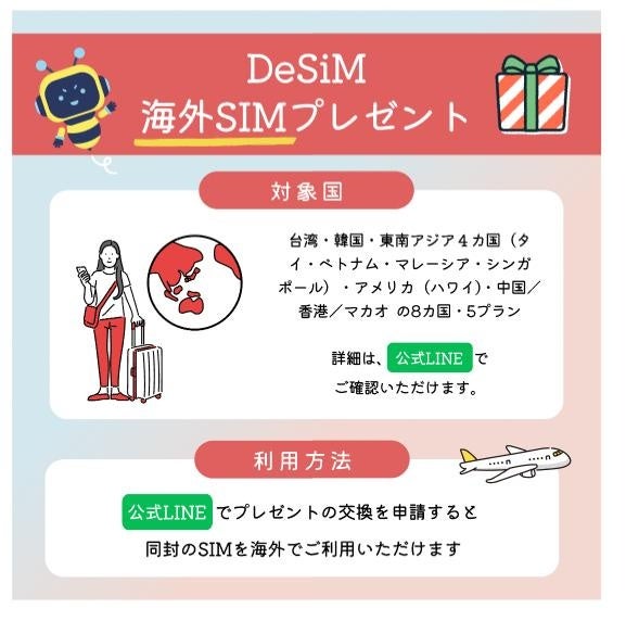 さらに、応募者全員に、お好きな国のeSIM(1日1GB)がプレゼントされます。