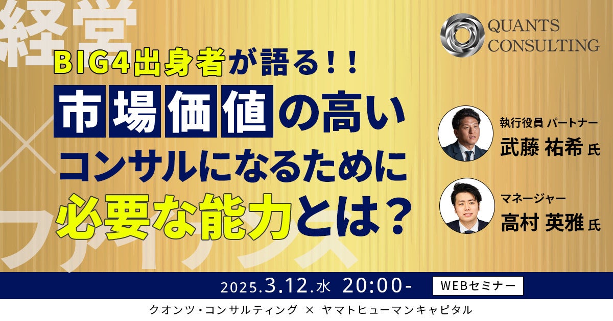 【3/12開催】真に市場価値の高いコンサルになるために経営とファイナンス能力を兼ね備えろ?! | クオンツ・コンサルティング × ヤマトヒューマンキャピタル
