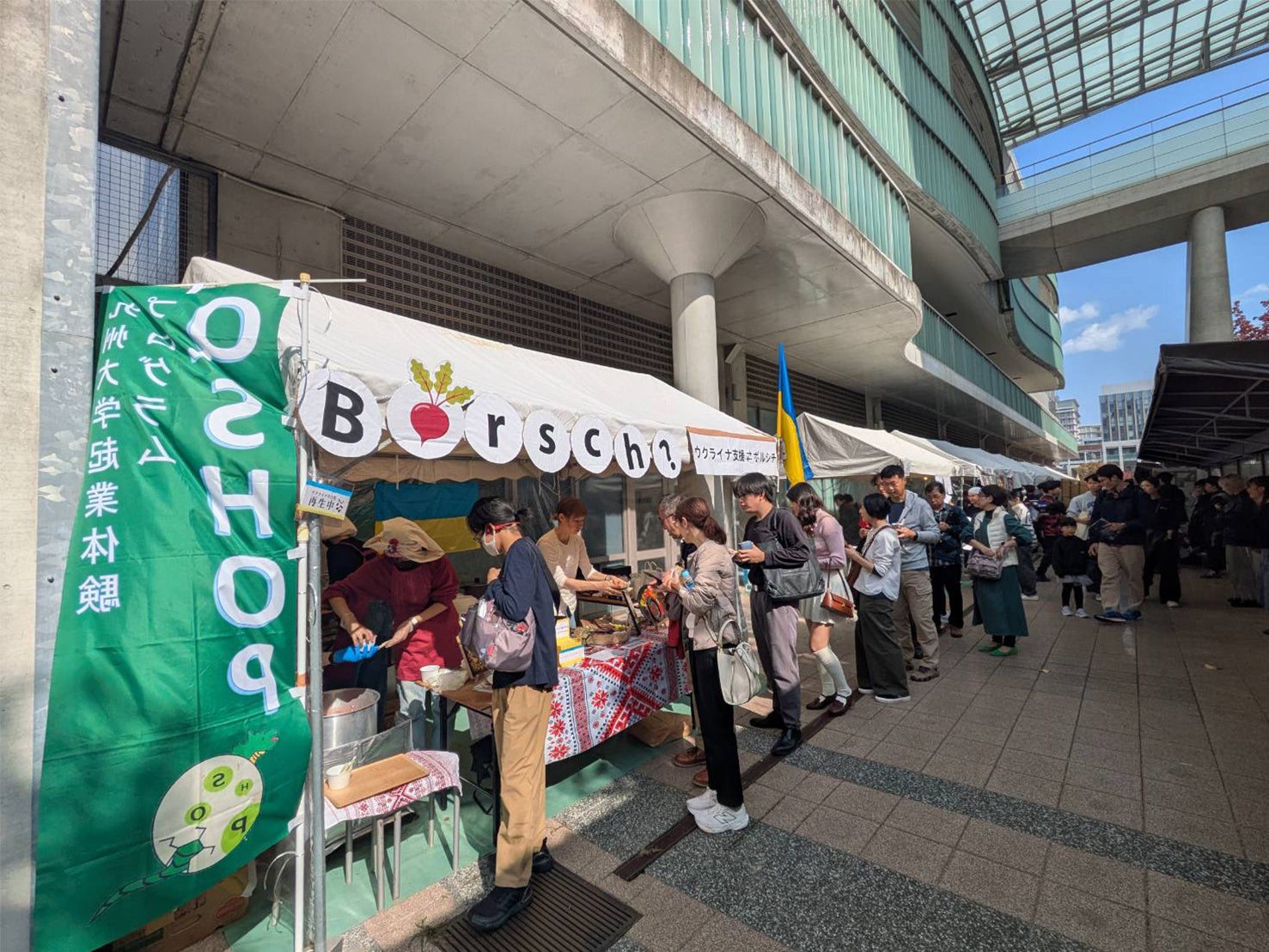 九州大学の学生が立ち上げた「株式会社Borsch?」は、「ウクライナ本場のこだわりのボルシチを届ける」ことを目指し、学園祭でボルシチ販売を実施。 準備段階から本格的なレシピづくり、当日の仕込み・装飾まで学生が主体となって企画・運営を行いました。