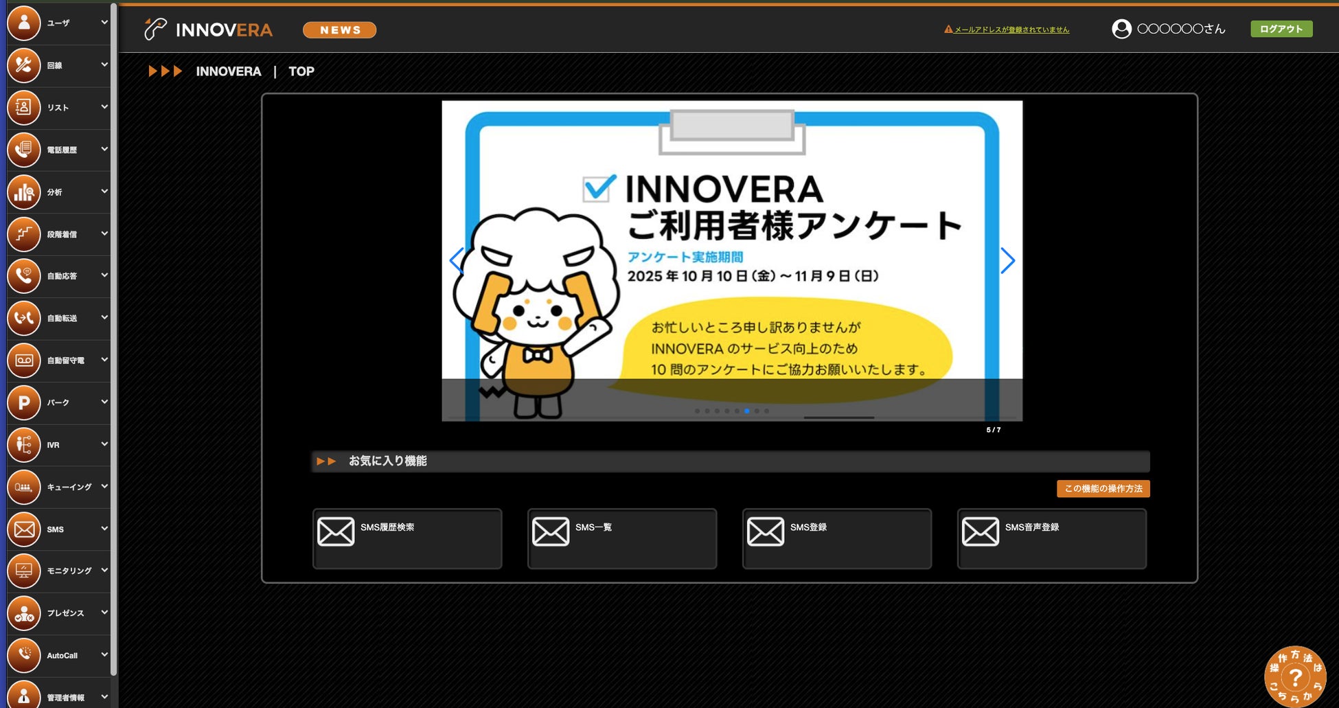 方法:INNOVERAの管理画面トップページのスライダーからアンケートサイトへリンク