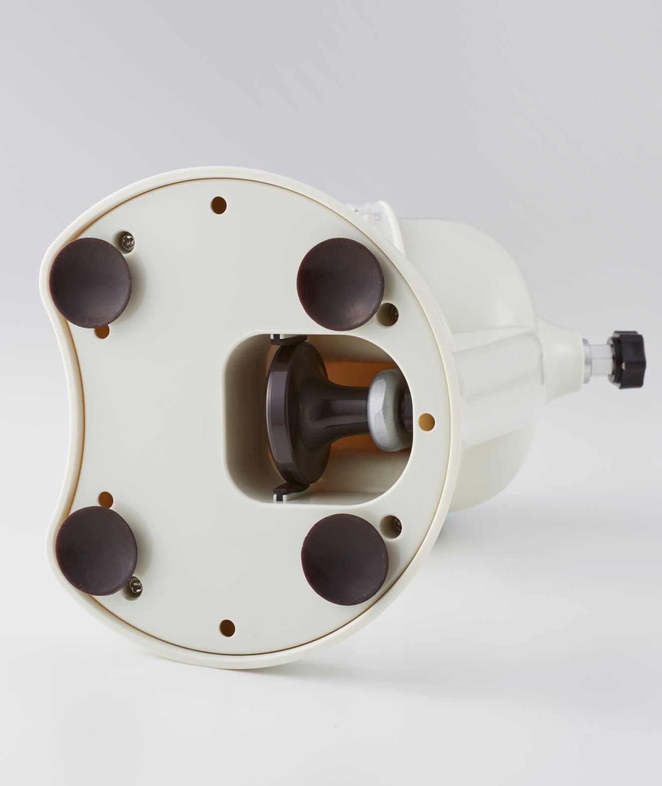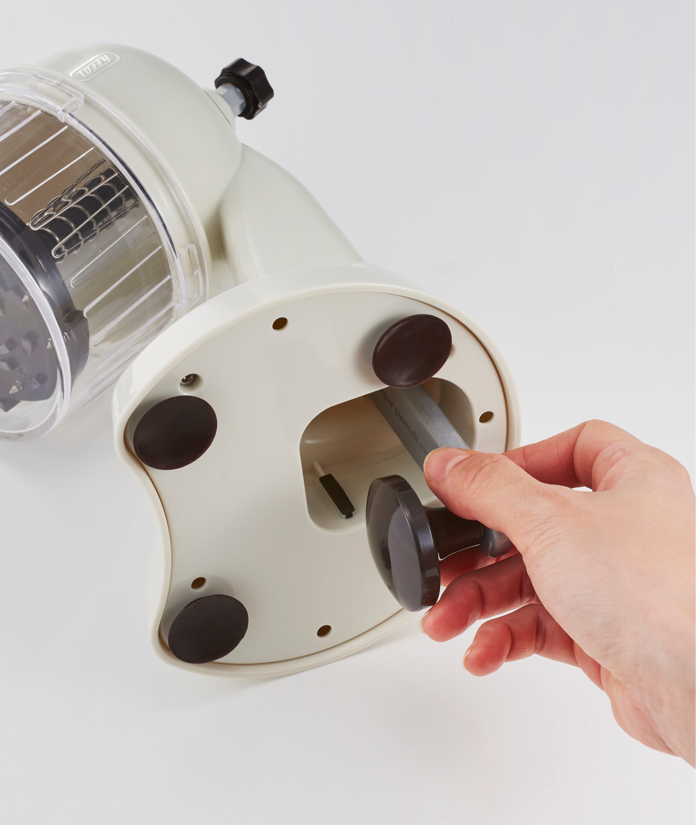 底面には4つの吸盤が付いており安定性もバツグン。ハンドルを回すだけの簡単操作で、お子さんから大人まで家族みんなで手軽に楽しめるかき氷器です。