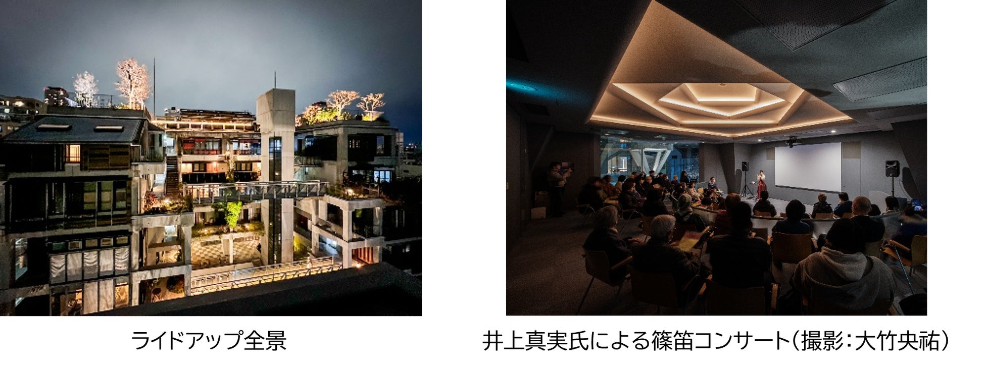 NEXT21をライトアップし、さらに点灯式イベントや篠笛奏者 井上真実氏による篠笛コンサートを実施したところ、イベントを機会にNEXT21に初めて訪れる方も多く、地域交流の場としての有効性も確認できました。今後はNEXT21のライトアップの継続と共用空間を利用したイベントを定期的に開催していく予定です。