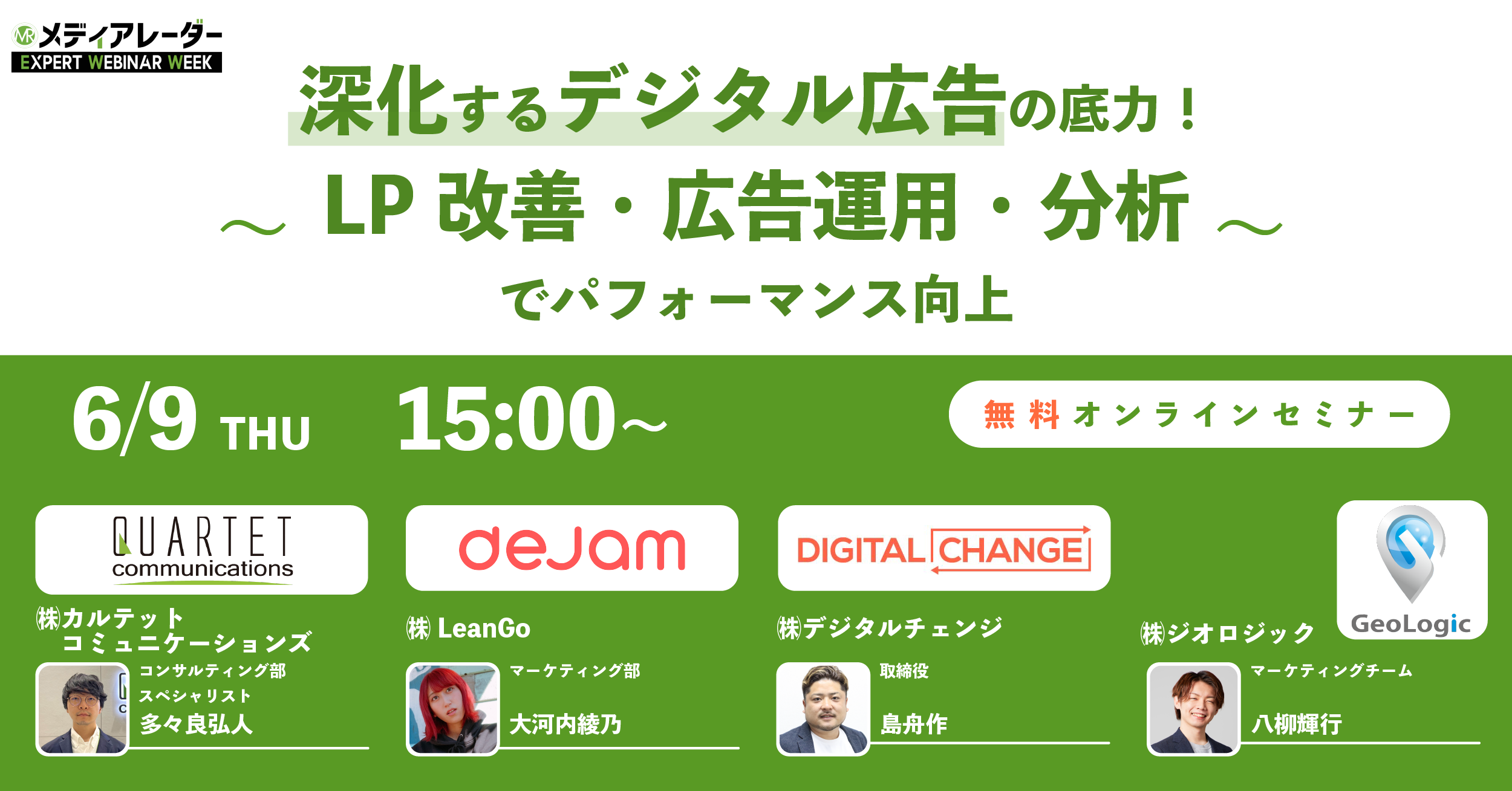 - 「深化するデジタル広告の底力! ~LP改善・広告運用・分析でパフォーマンス向上~」6月9日(木)15:00~