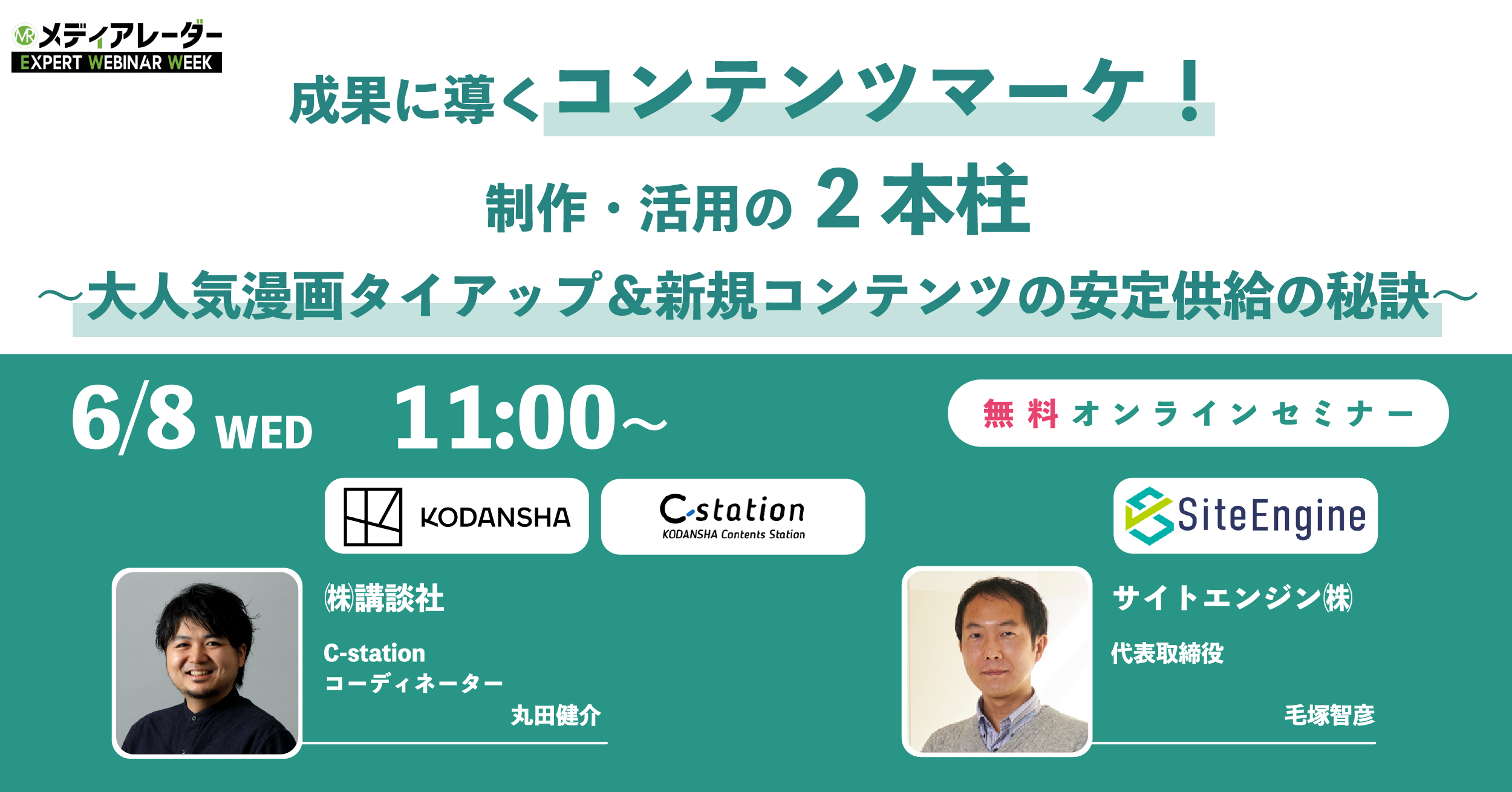 - 「成果に導くコンテンツマーケ!制作・活用の2本柱 ~大人気漫画タイアップ&新規コンテンツの安定供給の秘訣~」6月8日(水)11:00~