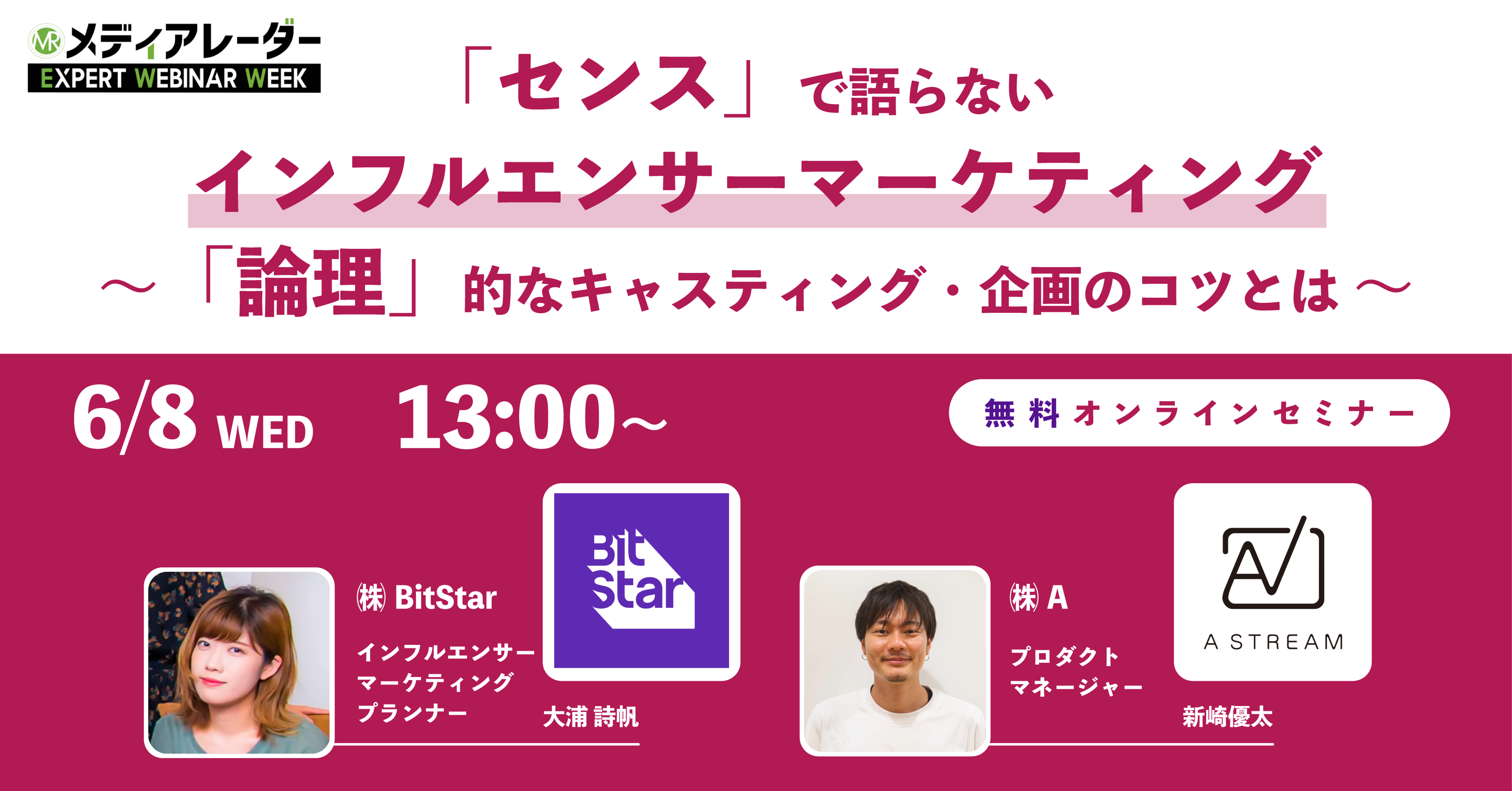 - 「『センス』で語らないインフルエンサーマーケティング~『論理』的なキャスティング・企画のコツとは~」6月8日(水)13:00~