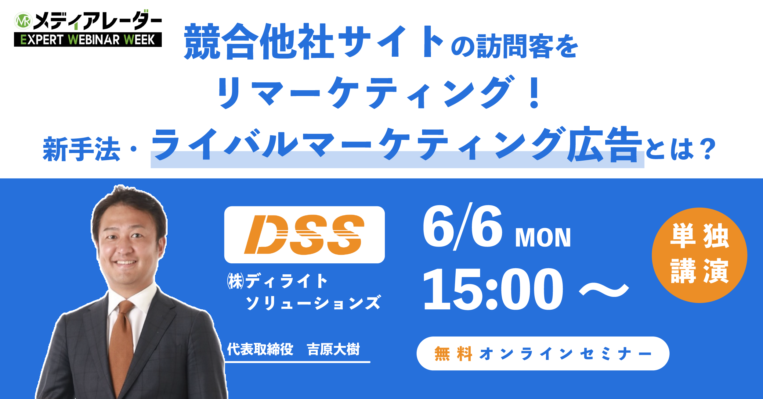 - 「競合他社サイトの訪問客をリマーケティング!新手法・ライバルマーケティング広告とは?」6月6日(月)15:00~