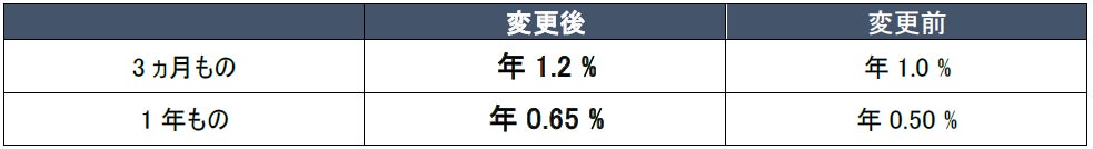 ~3カ月もの年1.2%、1年もの年0.65%に引き上げ~