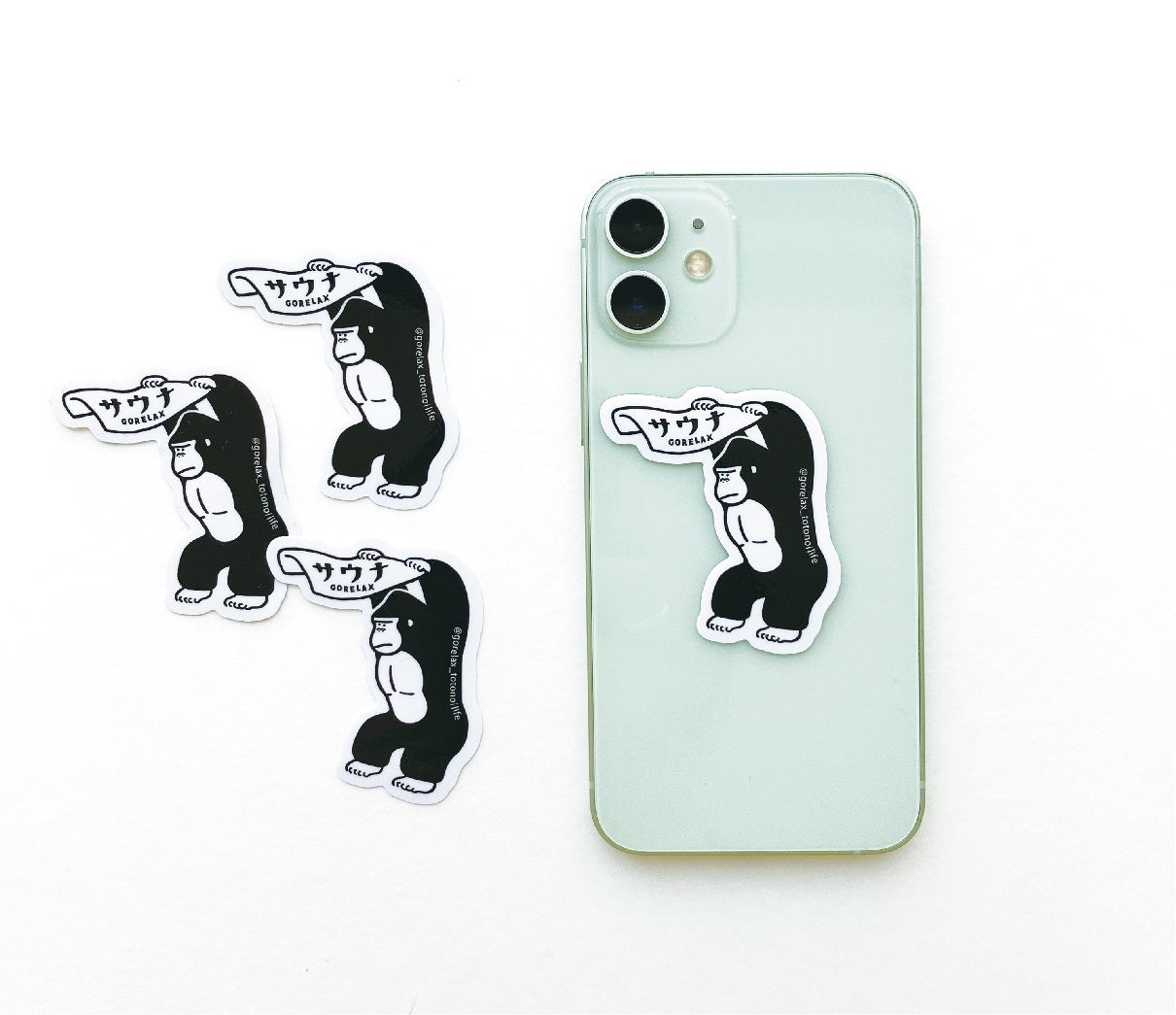その名も「ととのいステッカー!」 ゆるかわゴリラのまもるさんが人気の、ととのい系サウナブランド【ごリラックス】。ファン投票で選ばれたNEWデザインのステッカープレゼント企画がスタート♪