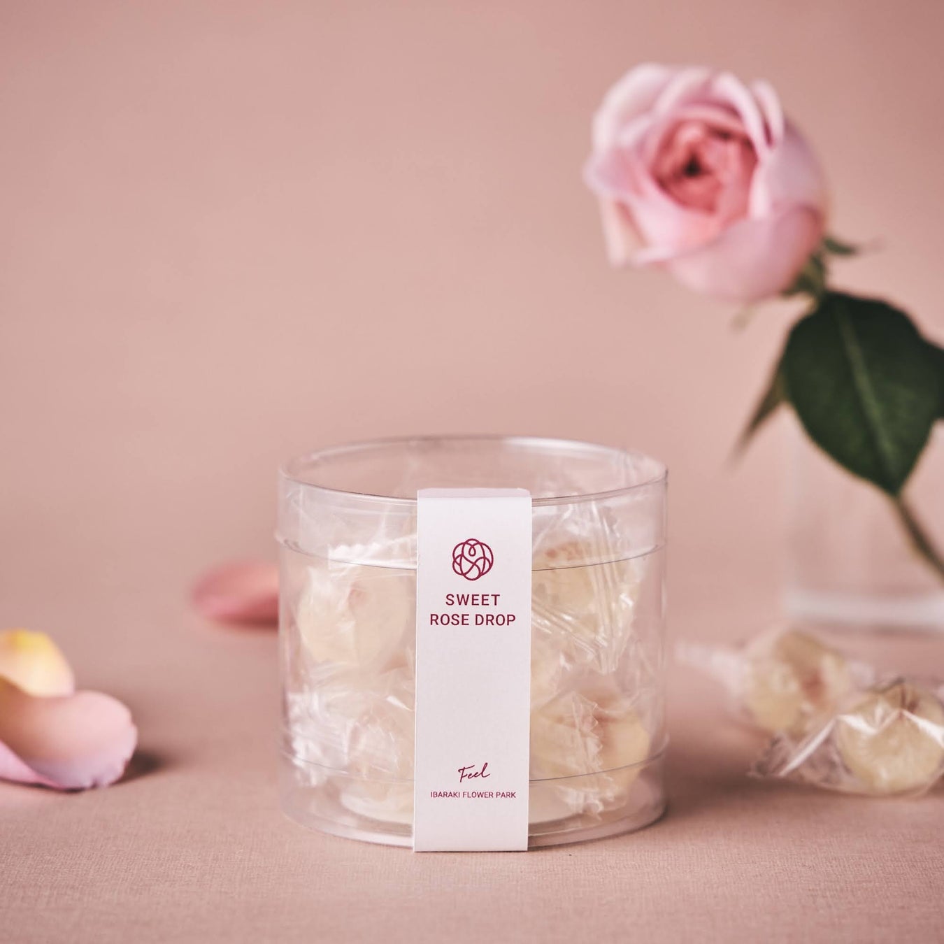 無農薬で丁寧に育てられたバラを朝摘みして一粒一粒、中心にバラのジャムを練りこんだ、いばらきフラワーパークオリジナルのキャンディドロップ。バラの豊かな香りと上品な味わいがやみつきに。