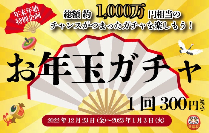 総額約1,000万円相当のチャンスがつまったガチャを楽しもう! お年玉ガチャ 1回300円(税込)