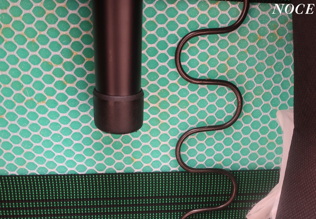 クッションは商品の輸送コストを抑えるため膨らんだ状態でシートの中に入っています。座面は高密度ウレタンを裏からS字バネとウェービングテープでしっかり固定されています。アウトレットといえども、正規品として作ったものなのでしっかりとした作りになっています。座面は、やや硬めの高密度ウレタンで沈みこみも少ないため、横座りや胡坐もかくことができます。