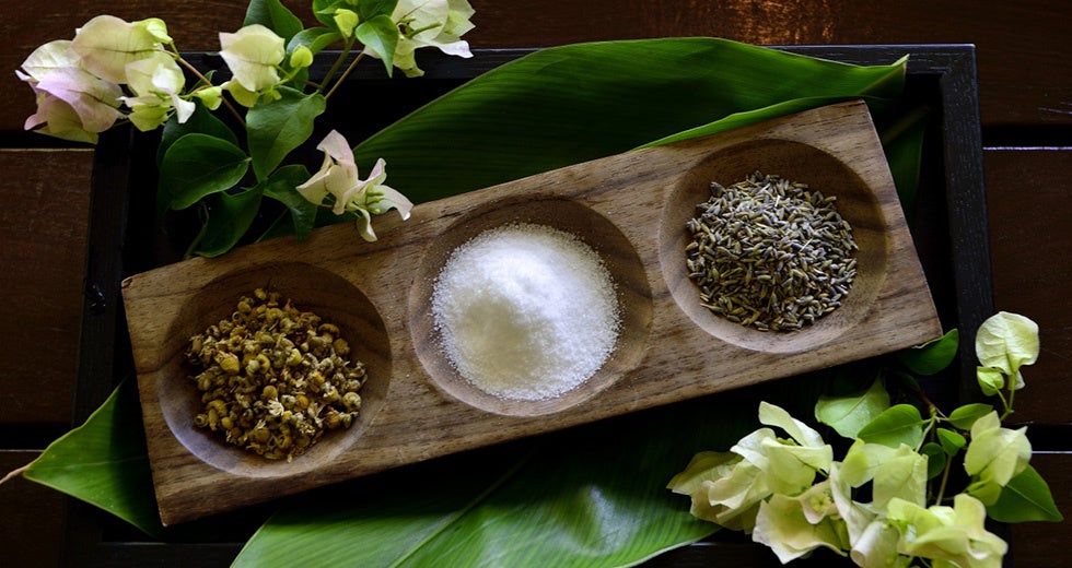 亜熱帯の森に包まれたようなバスタイムで身体を温めた後、沖縄の塩とハーブを使った角質ケア、または月桃エキスやモズクエキスが配合されたボディパックのいずれかのスキンケアメニューをお選びいただけます。お選びいただいたスキンケアメニューの後は、アロマオイルを用いたフルボディトリートメントで全身をしっかりと解きほぐしていきます。