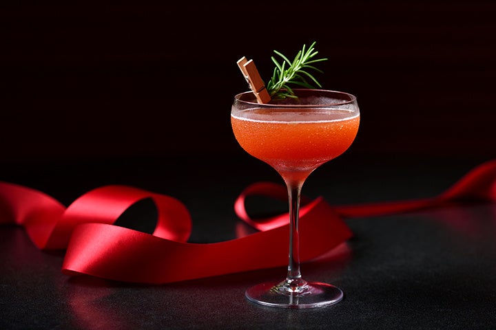 ホリデーシーズンにお届けする旬のカクテルは、クリスマスレッドにインスパイアされた「ノエル・ド・メアリー」。ウォッカとトマトの絶妙なハーモニーに、自家菜園「Our Farm」産のレモンバジルを使ったオリジナルシロップとローズマリーが加わり、爽やかな甘みと清涼な香りを演出します。ディナーのアペリティフにもおすすめです。