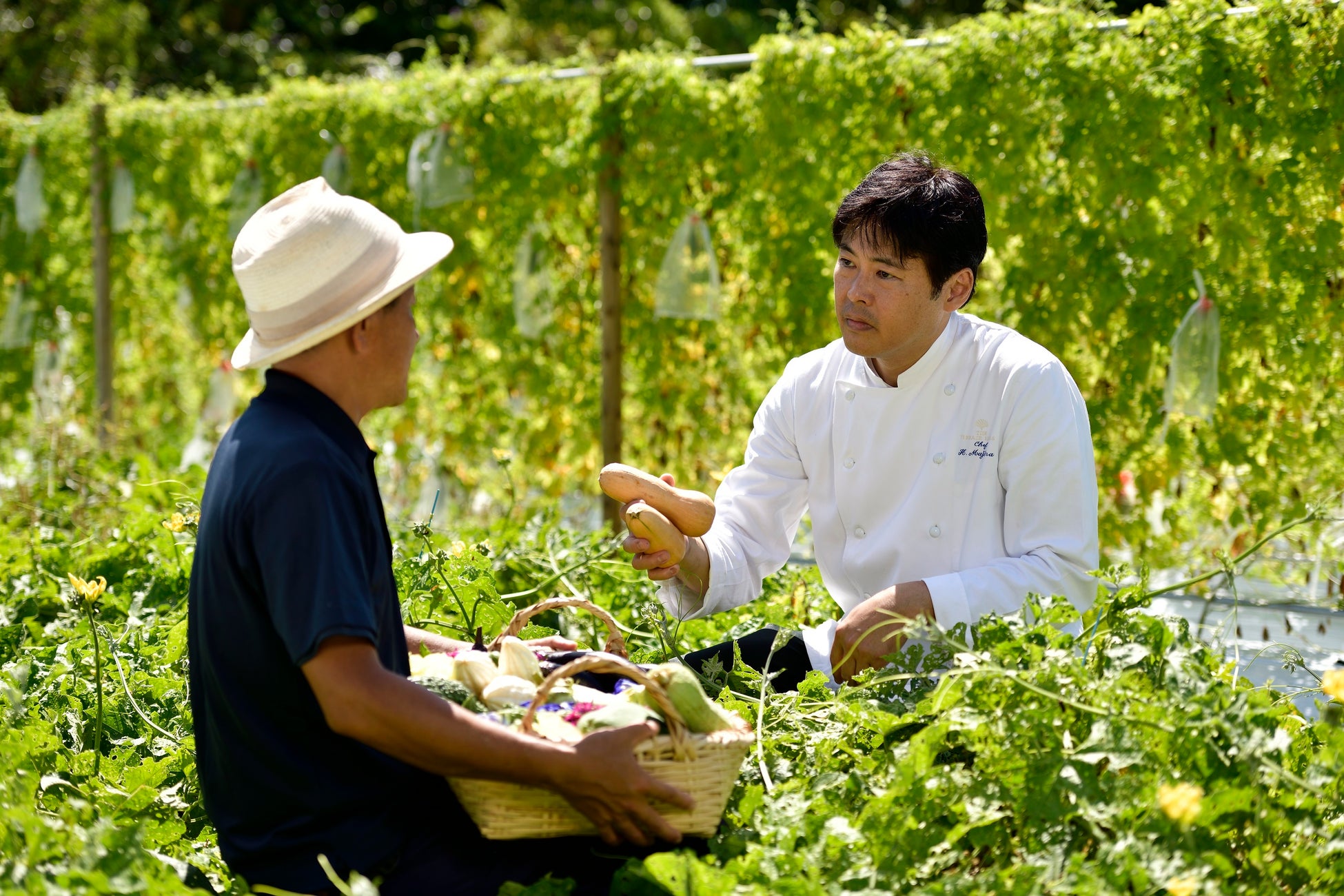 自家菜園「Our Farm」で収穫した旬の野菜やハーブを用い、シェフが腕によりをかけて提案する季節のコースディナー「Essence」。