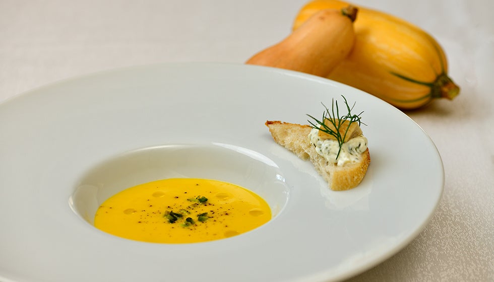 ホリデーシーズンは“フォレストクリスマス”をテーマに、緑の息吹きあふれる、自然の恵み豊かなディナーをご用意いたします。オードブルは、Our Farm産の採れたて野菜をたっぷりと、旬のオマールエビとともに。スープは、秋に収穫し、追熟にて甘さを増したバターナッツカボチャをポタージュでご提供します。魚料理やメインディッシュにも、自家菜園の野菜や香草との美味なるマリアージュをお楽しみいただけます。