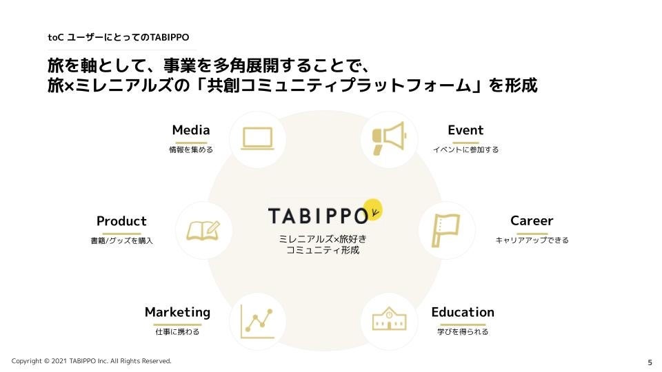 TABIPPOは「旅」を広める会社として、コミュニティ形成を中心にメディア運営やイベント開催など多角的に事業展開をしています。