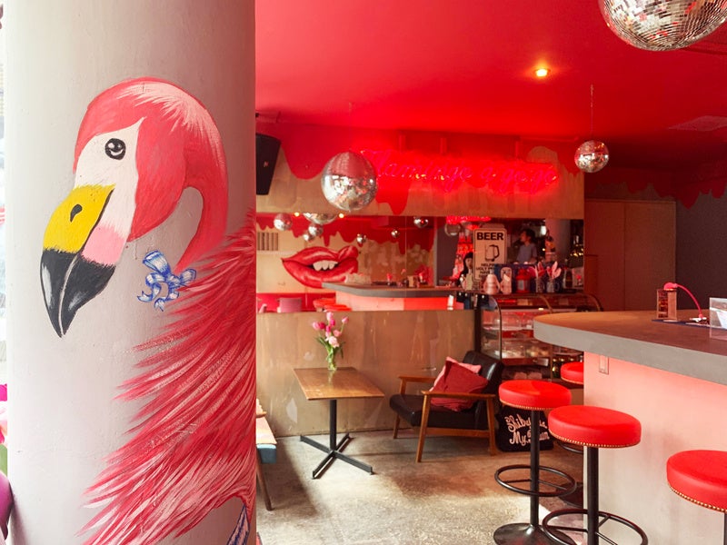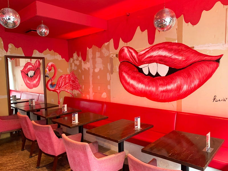 本年3月31日で惜しまれつつ閉店した「Cafe FLAMINGO」の内装を引き継ぎ、ビビッドな内装、モチーフの壁画はそのままに、東南アジアリゾートのバルの雰囲気を味わえる。